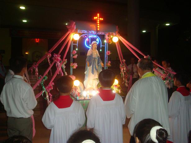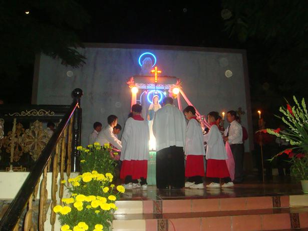 Chiều ngày 31/10/2011 , chiều cuối tháng Mân côi, tháng kính Đức Mẹ. Cộng đoàn giáo dân Giáo Xứ Vinh Hà đã họp nhau về trước tôn nhan Đức Mẹ để suy tôn cầu nguyện và cung nghinh Đức mẹ.
