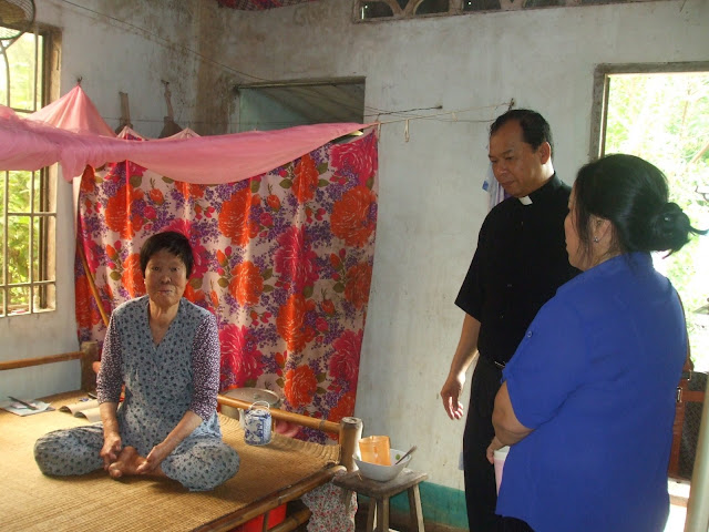 Giáo dân ở đây nghèo lắm, có nải chuối, mận, xoài, mớ tép, cá… cũng đem lên xin cha làm lễ cho họ. Con chiên nghèo như vậy thì lấy đâu cha con giúp cho những người ốm đau bệnh tật khác ở rải rác trong ba xã cần có cơm ăn, áo mặc, thuốc uống, chúng tôi muốn cha dẫn đến thăm một số người bệnh tật gần nhà thờ để chúng tôi còn kịp ra về. Trước khi ra về cha dâng một Thánh lễ cầu bình an cho đoàn và tạ ơn ân nhân đã quảng đại giúp đỡ quà để cha phân phát cho con chiên cùng khổ.