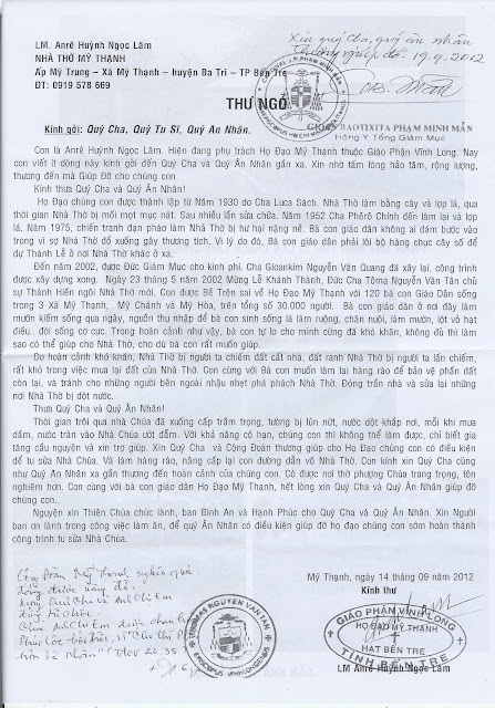 - Hoặc gửi trực tiếp cho cha qua địa chỉ: